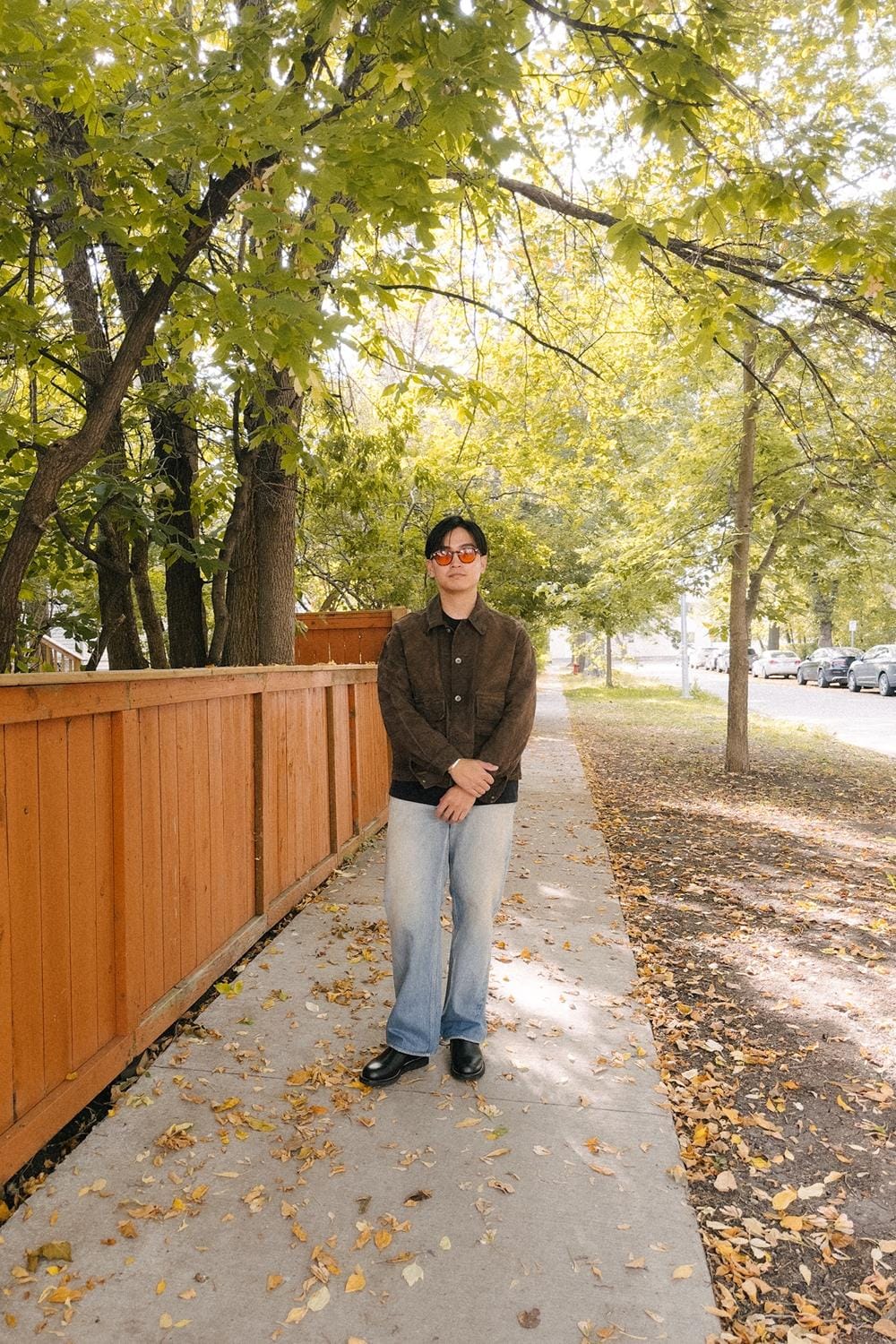 - @lmaozedong wearing an Auralee jean jacket.